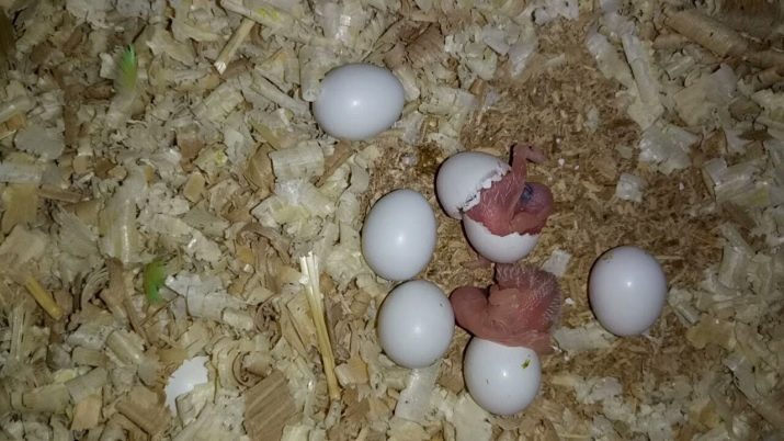 The first parrot hatch at 18-21 days, all the rest are selected from the shell with the same temporary difference with which the eggs were laid.