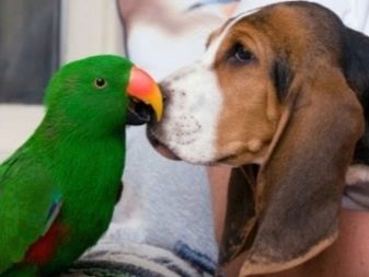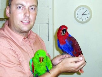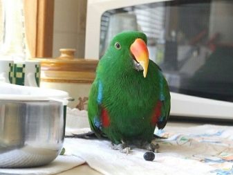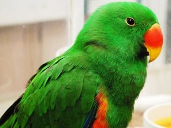 Green parrots, or eclectus, are quite large in size - they can grow to almost 40 cm and weigh over 0.5 kg. Their color is also quite original: