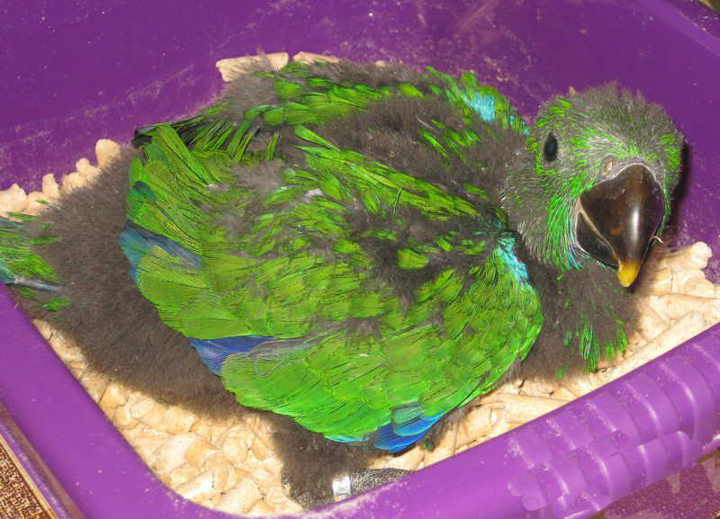Parrot marriage games begin with a search for partners. They choose, as a rule, those hollows that are high, and therefore safe. For nearly a month, the female will prepare the nest for the future baby, and all this time she will not leave the nest for a long time. When the time of laying eggs comes, she will hide in the hollow and stay there, the male will feed her all this time. After the chicks hatched, he feeds them too. The female incubates most often 1-2 eggs for about a month, after which the birds hatch, completely unable to exist on their own. The female continues to take care of the babies until they can take care of themselves, the male carries the food for them all this period. Most often, it lasts about 3 months, and the male can simultaneously help other females and young birds, strangers who have nothing to do with it.