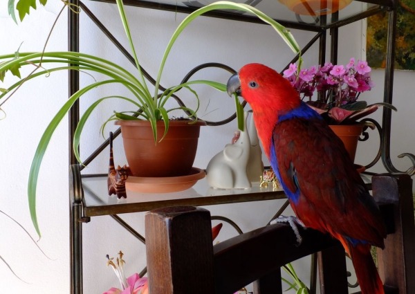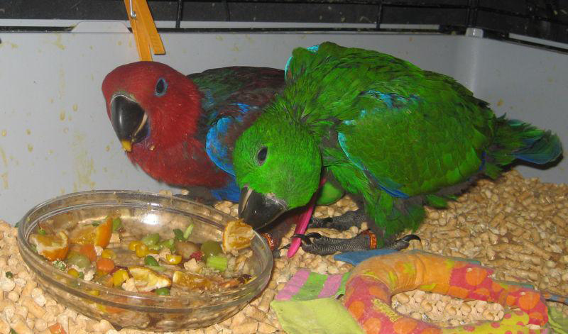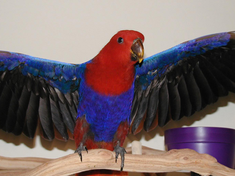 periodically rearrange everything in the bird's dwelling, change toys, this must be done at least once a week, otherwise the eclectus will start to get bored;