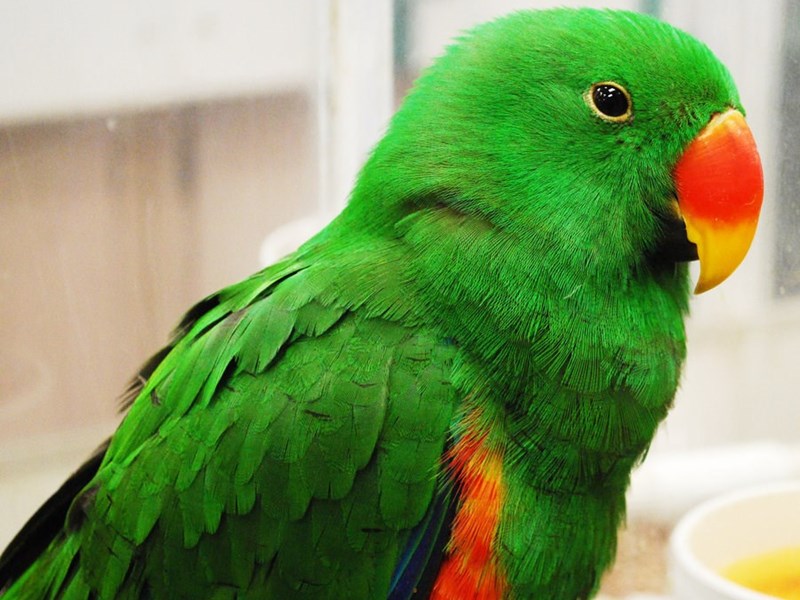 Eclectus education is a rather interesting activity. It is easier and faster to build a relationship with a male and tame him, while females are too suspicious and cautious for a long time. After the bird starts to trust you, the relationship will be very touching, regardless of gender.