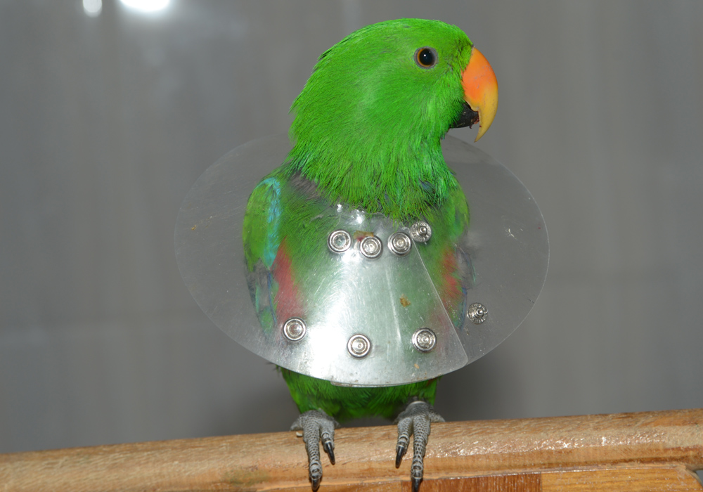 Non-infectious. For example, vitamin deficiency. The most common cause of such diseases is malnutrition, monotonous food. In addition, there may be injuries, especially if you do not comply with safety regulations, letting the bird fly. Curtains and mirrors must be closed. The treatment is quite complicated, as the parrots pluck out their feathers after processing and applying ointments, tearing the bandages.