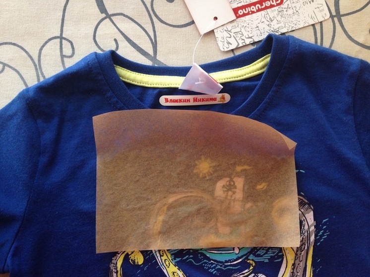 - Having achieved the desired result, the clothes need to be turned out and walked with a heated iron in the place of the transferred image from the wrong side.