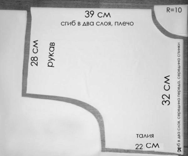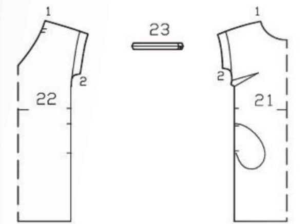 - Perform shoulder seams and seams on the sleeves. In the side seams leave space for the pocket.