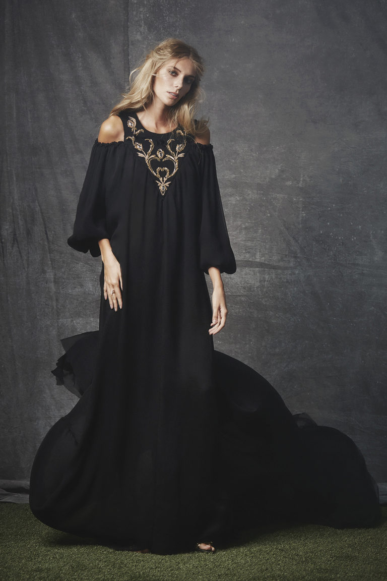This model is attractive with one-piece sleeves with straps and a plunging neckline on the back.