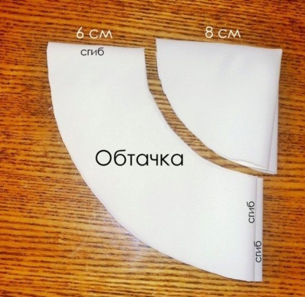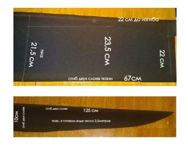 Open up the skirt by folding the fabric over the lobe in 4 layers. If you wish, you can carve out a belt. Its length will be 2.5 m.