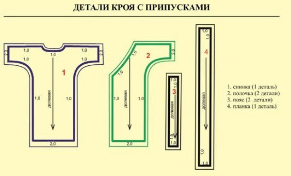 - On the skirt stitch tuck. On the back panel, make the middle seam, and on the front panel - relief.