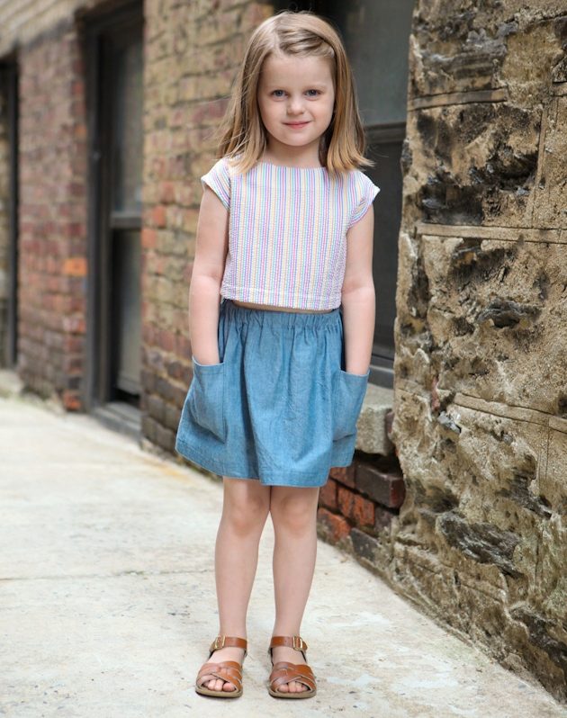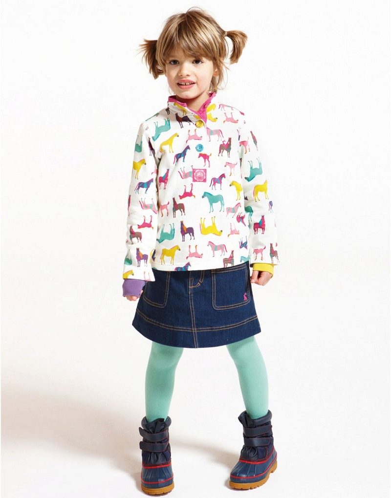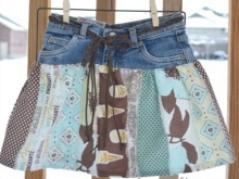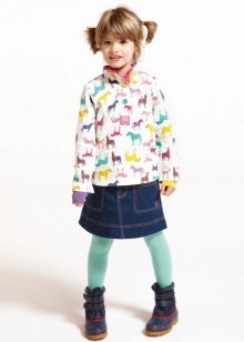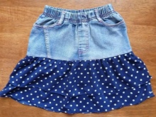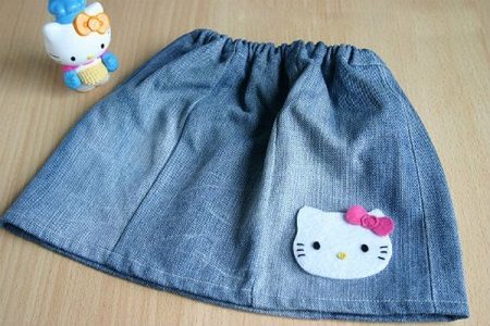 The combined skirt. Always in fashion. It is easy and simple to combine jeans, especially if the mother is a needlewoman. Leaving up from the old skirt and finishing with any material of “cheerful” colors (especially this year the polka-dot and checked fabric is popular), we get a fresh skirt almost for free.
