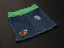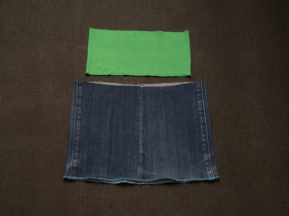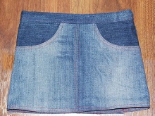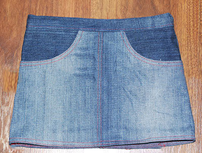 Simple, straight denim skirt with elastic. Take old jeans. Cut off the bottom of the leg and dangling seams. Sew them.