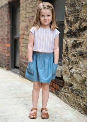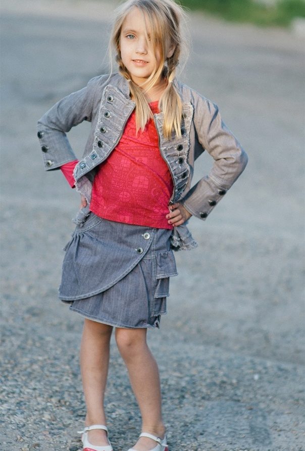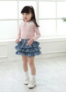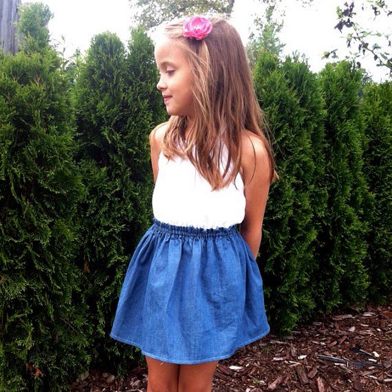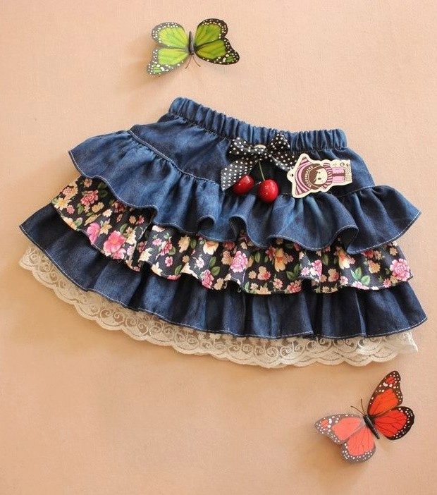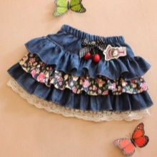 Models of children's denim skirts impress with their diversity. Little women of fashion love to wear skirts with embroidery. Beautifully large floral patterns on a blue background. Skirts, decorated with rhinestones, finishing fabric, with laces and inserts. Good and "torn" with untreated model edges. A model with elastic, pockets, prints or buttons, no matter what you choose, remember, the denim skirt is practical and can be worn not only in summer.