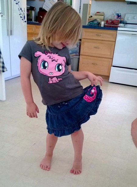 This is a great way to improve the skirt for the kids, which in the waist presses and presses. Cut off the belt from the skirt. We take a strip equal to the waist circumference of the girl, twist it in half and sew to our skirt (the strip can be cut out of sweatpants that are small but suitable as a fabric). Do not forget to insert the gum in the belt.