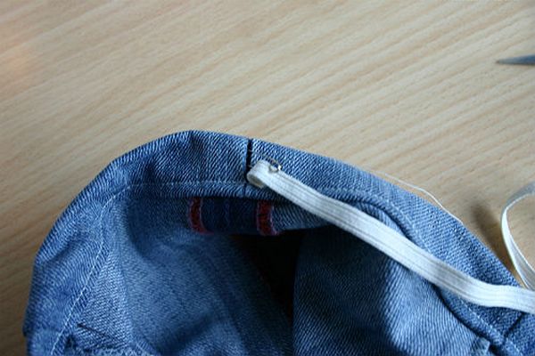 To determine the size of the elastic, measure the waist and subtract 5 cm. At the end of the elastic, put on a pin and pull it through the belt.