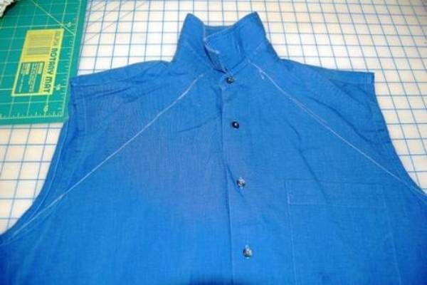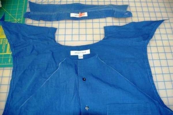 - You will need a shirt or t-shirt and shirt. From the last, just above the beginning of the armhole, cut off the upper part, carefully cutting the sleeves.