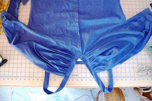 - From the sleeves form the bodice. Attach them to the shirt with a curved edge to the middle.
