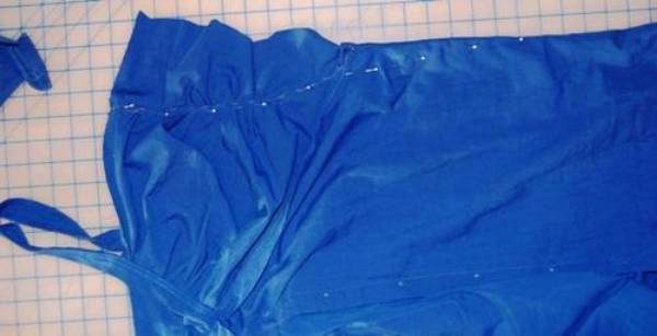 - Bend the upper sections, fixing with pins or thread with a needle, and then stitch along the lower edge, creating a drawstring.