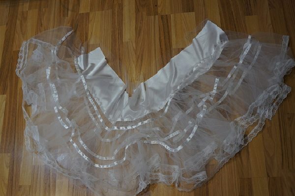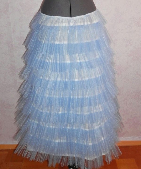 For a petticoat under the half-skirt the volume in the waist and hips area is not needed. Therefore, the base will be a half-skirt and tulle frills.