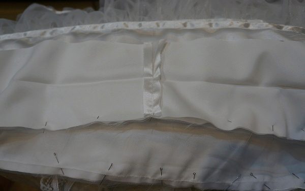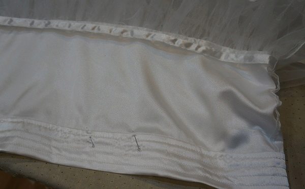In order not to be confused all the day in the multi-layered skirts of a magnificent wedding dress, we will sew a petticoat on the rings.