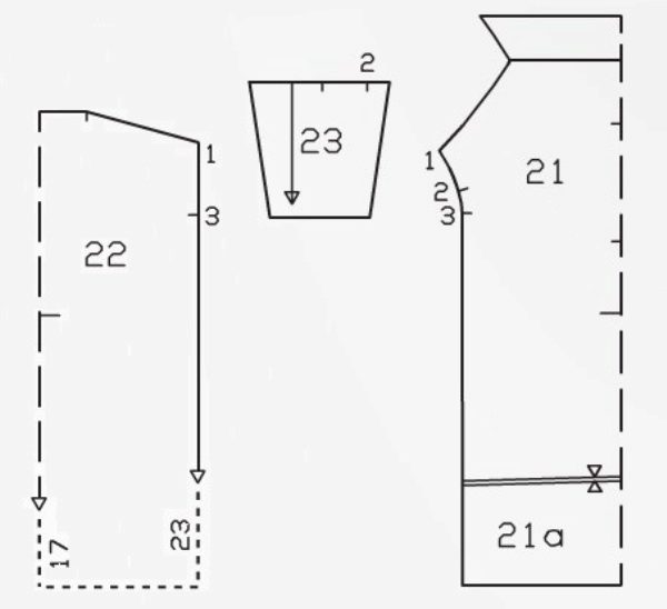 - Re-shoot the details of the pattern, just do not forget about the increase of 1.5 cm for bending the bottom and on the seams.