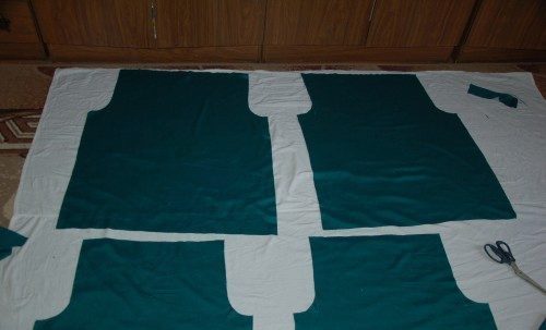 Dig out 2 large rectangles for the dress and 2 small rectangles for the sleeves.