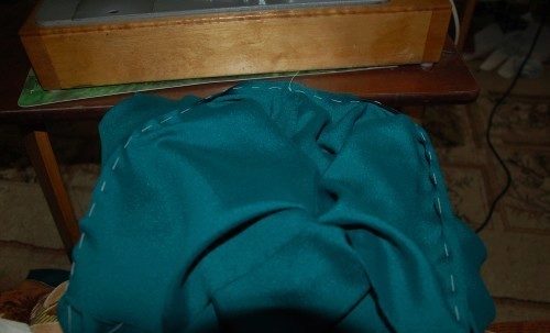 - Longitudinal lines of stitches on the front and back translate with sweeping stitches on the front side, pin them off and stitch.