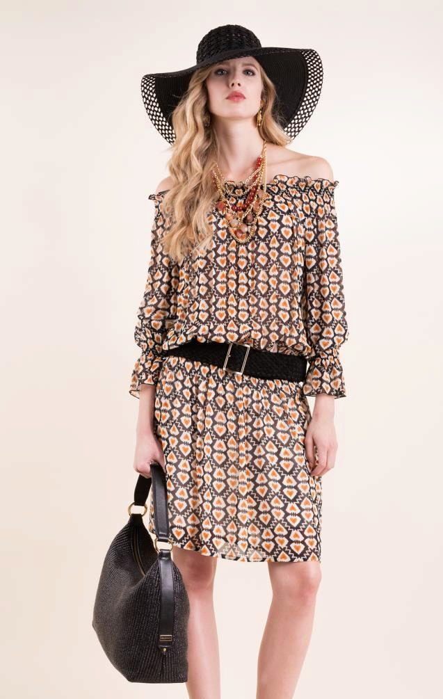 The dress on the elastic with open shoulders is called "young lady-peasant". It is feminine, with a twist and is perfect for lovers of country style or boho. The model will look good on the beach and at the party. The main thing is to choose the length, fabric and jewelry, which can serve as a belt, flower or beads.