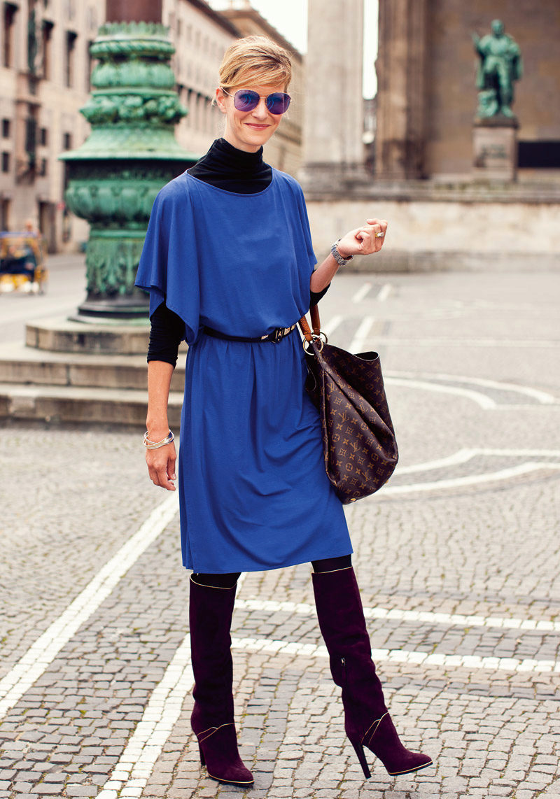 A straight knit dress will not look boring, if you make the neckline wavy, add a small drape, and emphasize the waist with a narrow belt. Walking through the city, you will definitely attract attention to yourself.