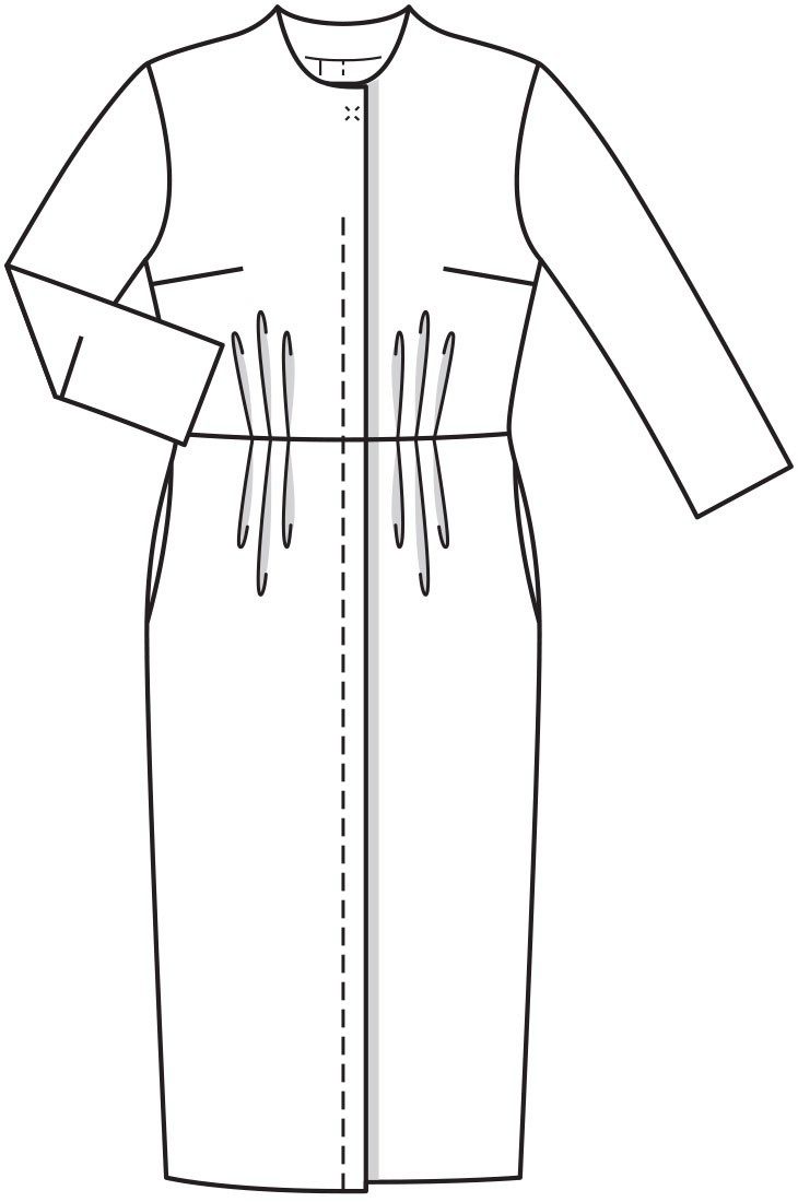 - Stitch the chest tuck on the details in front. Also lay the folds on the skirt and bodice front and back.