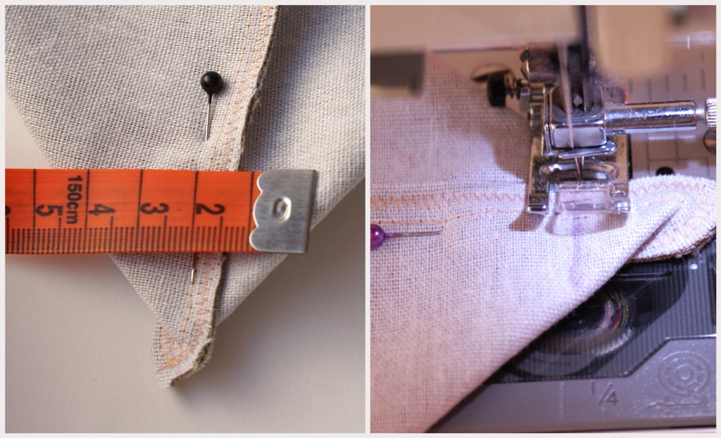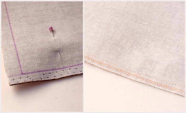 - Getting to the bottom formation: from the bottom of the sewn part, the corners are carefully inserted, after which the seam is fixed with a pin.It is necessary to measure the thickness of the gadget perpendicular to the seam and mark it with a pencil. Now, along this contour, the product should be stitched, and the excess fabric should be cut off. For the day it will be even better to lay two lines to make it stronger. In the same way, we stitch the second corner, as well as the lining. By the way, in its lower part it is necessary to leave a hole of small size.