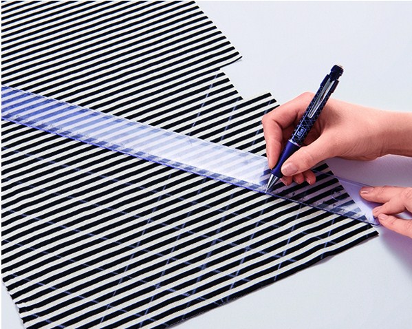 - To make a marking from seamy side of fabric. It is necessary to neatly put on the material, with the help of a ruler and tailoring chalk, the markings of the many inverted squares that look like neat equilateral diamonds.