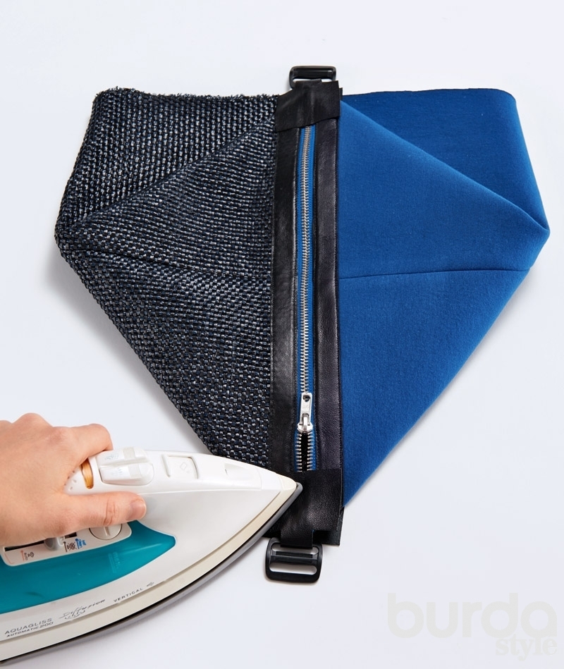- Straight seam fasten the front and rear walls with a rectangular fitting. The next step - we sew the lining, then insert the zipper. It is better not to save on the fastener, because cheap lightning is very easy to disable.