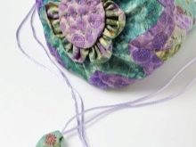 Measuring the perimeter of the ring, cut out the bottom, connect it to the amplifier and lining, then sew in the bottom of the bag using a slanting inlay. It remains to decorate the model with a ribbon or other decor.