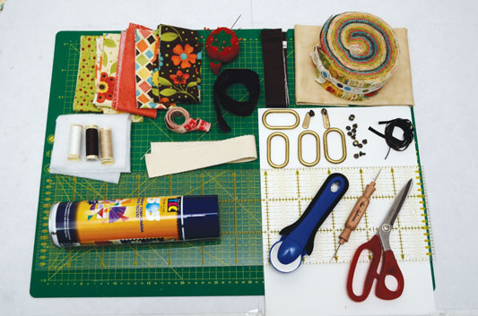 For sewing accessory is better to use a new fabric. (small cuts of different colors will do). In addition to the base, you need a fabric for the lining, sintepon, textiles for bag handles, leatherette strips and sewing accessories.
