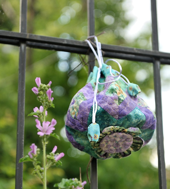 - The “handle” of thick cord should be fixed with the help of original loops along the upper edge of the bag. It remains to stretch the cord through them and close the ends of the flower buds.