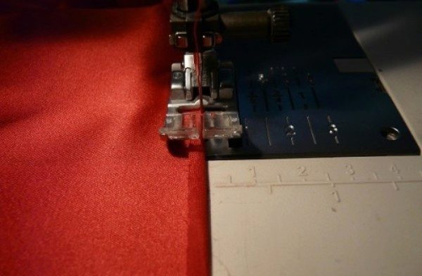 - Make the bottom of the removable skirt, first pressing the edges, and then sewed by hand. Side slices also press and scribe to the edge.