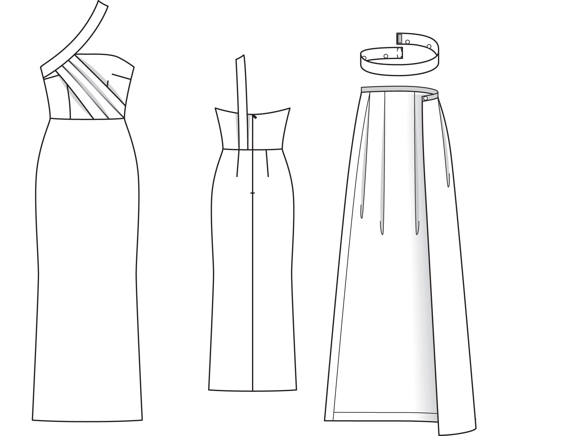 As for our evening dress with one strap, you will need dushes or well-shaped dress fabric.