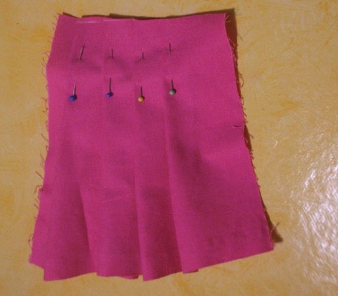 - Add to the seams and cut 1.5 cm each, along the longitudinal section of the top skirt cloth 3.5 cm, and on the bottom of the dress and the top skirt 4 cm.