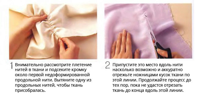 If the fabric is cut unevenly, then the edge needs to be leveled. To do this, pull the cross thread. A line will appear, which will show where the fabric should be cut.