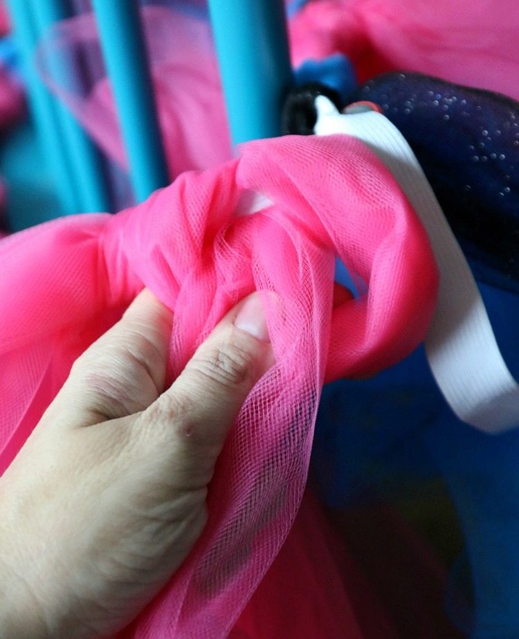 Although monochromatic tutu skirts are quite common, a tulle product of several shades is very interesting and bright. If you want to make such a multi-color version, you should get cuts of tulle of different shades.