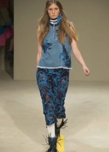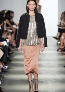 - Evening style: lace fabrics, velvet, velor, natural or artificial suede, leather, fur, satin, satin, silk, shanzhan taffeta.