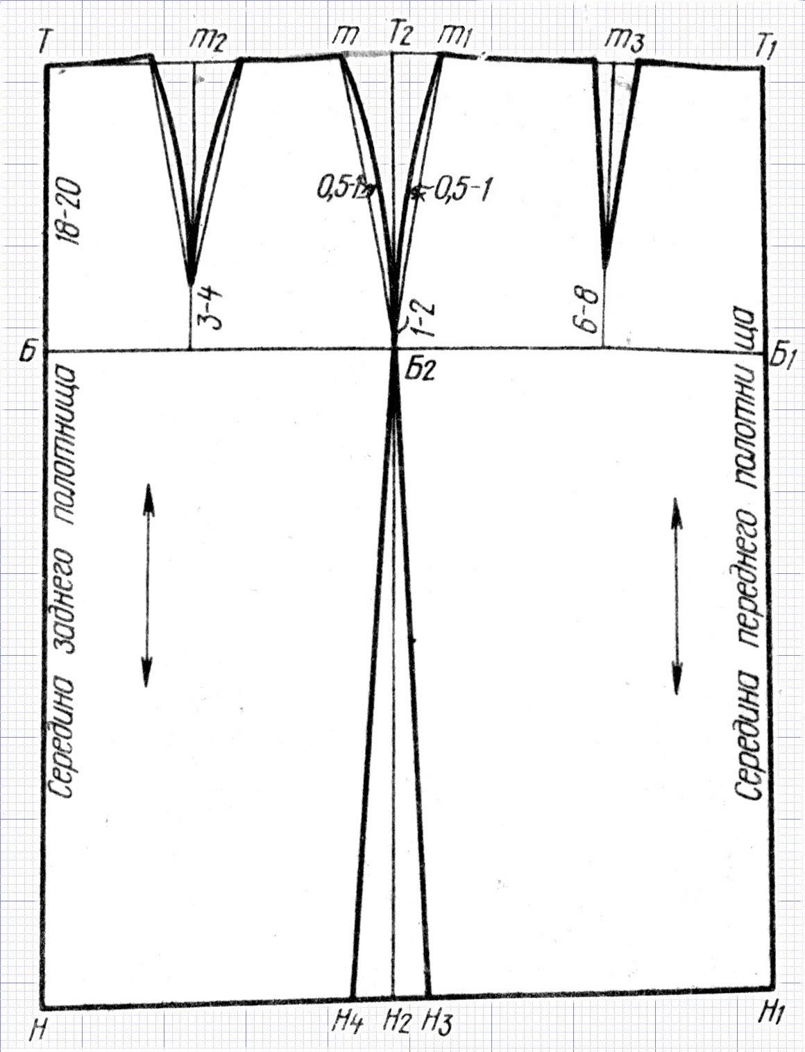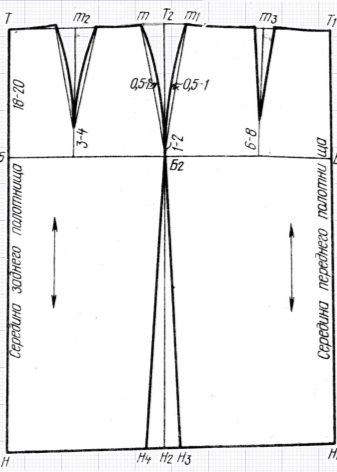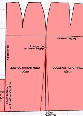 Build a pattern in the same way. This is a classic straight pencil skirt. But so that it does not hinder your movements, it must have a slot. Therefore, the rear panel should undergo a slight modernization, as indicated in the figure.
