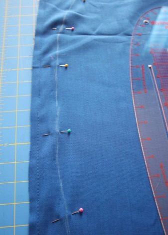 - Then put this blank on yourself and fix the desired silhouette with pins so that the fabric fits your shape tightly. Remove, on the landmarks marked with pins, draw lines and, adding seam allowances of 2 cm, cut out.