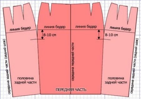 - Next, cut two rectangles of fabric with the desired length and width equal to the girth of the hips / 2 + 2 cm.