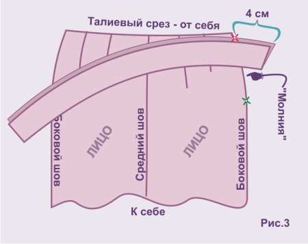 - If the skirt is sitting as it should, we connect the side sections, sew the fastener.