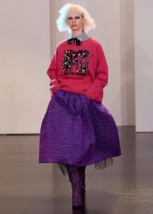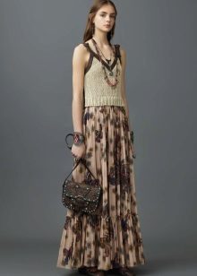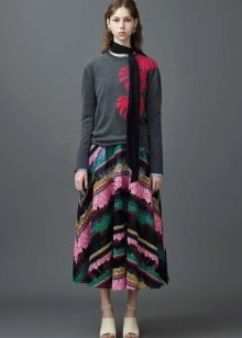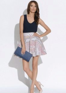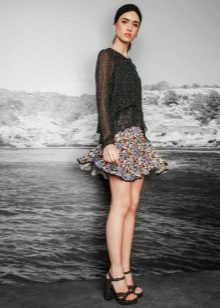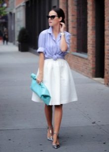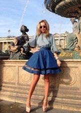 - Since the sun skirt is a very bright thing, the top to it should be chosen more restrained, simple cut. For example, a lace-up blouse or a satin, a cardigan, a jacket or even a top would ideally be combined with it.