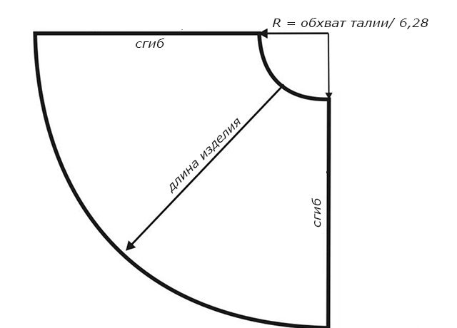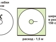 Now you can create a formula to calculate the desired amount of fabric: the length of the future skirt, multiplied by 2 + waist girth divided by 2 + 10 cm (calculated on the shrinkage of the fabric and the allowances).