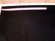 - Use adhesive tape to process the belt pattern along the entire length and half the width. To do this, place on the seamy side of the future belt glue tape.Arrange it so that it stretches along the entire length and occupies half the width of the workpiece for the belt (the upper edge of the tape must coincide with the upper edge of the fabric).