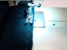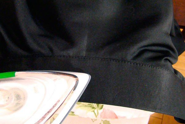 - The final action is the treatment of the bottom edge of the skirt. Turn the edge twice (the first time at 0.5 cm, the second - at 1 cm). Every bend carefully ironed. To outline, try on. If the length suits you - you can stitch on the typewriter. If the fabric is too thin, you can treat the edges on the overlock with a small zigzag stitching.