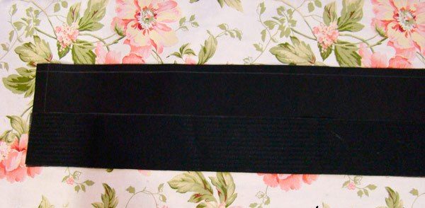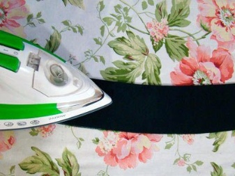 - Attach the tape to the fabric must be with iron. It should be ironed through a piece of unwanted cotton cloth, otherwise you will ruin the sole of the iron. Before sticking the tape it is better to moisten a little. Fold the belt in half (lengthwise) so that the sides are inside and the sections are aligned. And in this position, iron again. The final touch is the final shape of the belt. To do this, iron it again, strongly delaying the cut and ironing the fold. So the belt will fit snugly around the waist. Be sure to sweep the belt after this cut.