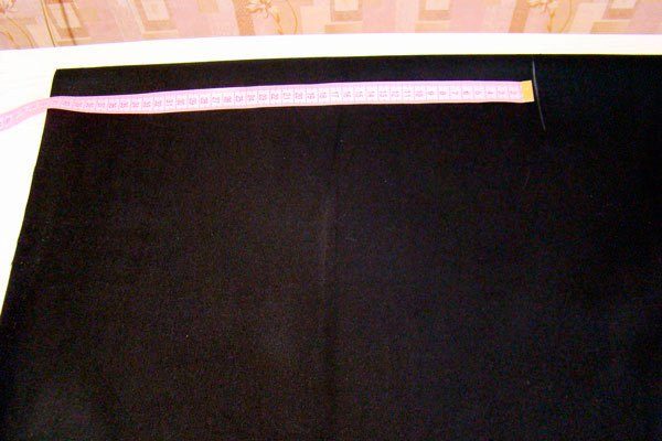 - Along the fold line, set aside the length of the skirt + 2 cm (allowance for hemming of the bottom edge). Mark the reference point.