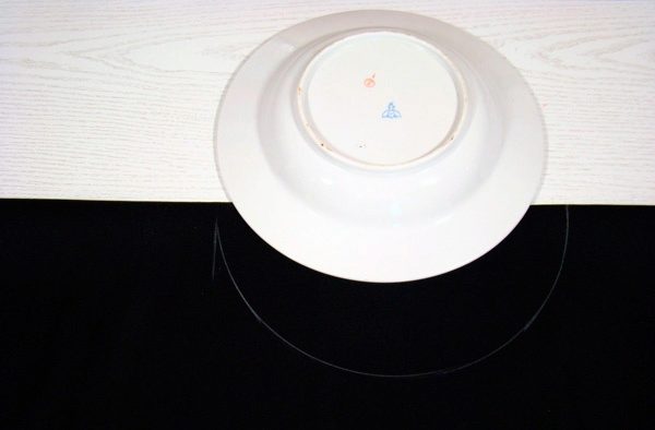 - a circle whose diameter exceeds the girth of your waist by 3 cm (allowances (1.5 and 1.5 cm) along the middle seam) - this may be a plate.